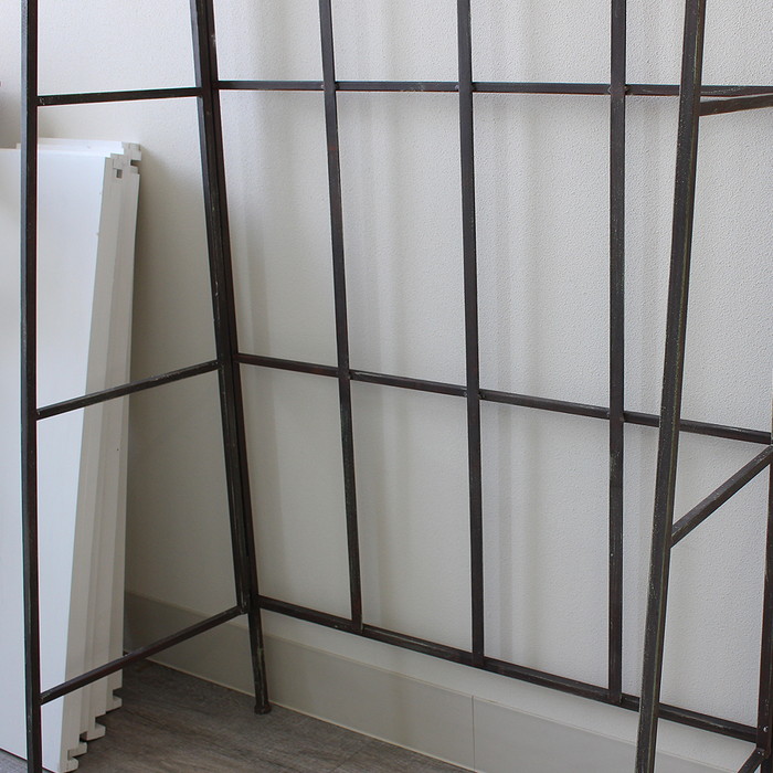 アンティーク調のホワイトに塗装された棚板と、スチール製の本体で、甘くなり過ぎないシェルフです。