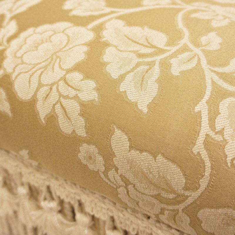 艶のあるゴールドの生地に、クラシックな華の刺繍がアクセント
