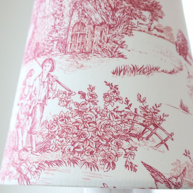 クラシカルな風景柄が印象的なトワル・ド・ジュイ生地を、ランプシェード用に柄の小さいタイプから厳選しました。繊細なデザインをより美しくお楽しみいただけます。