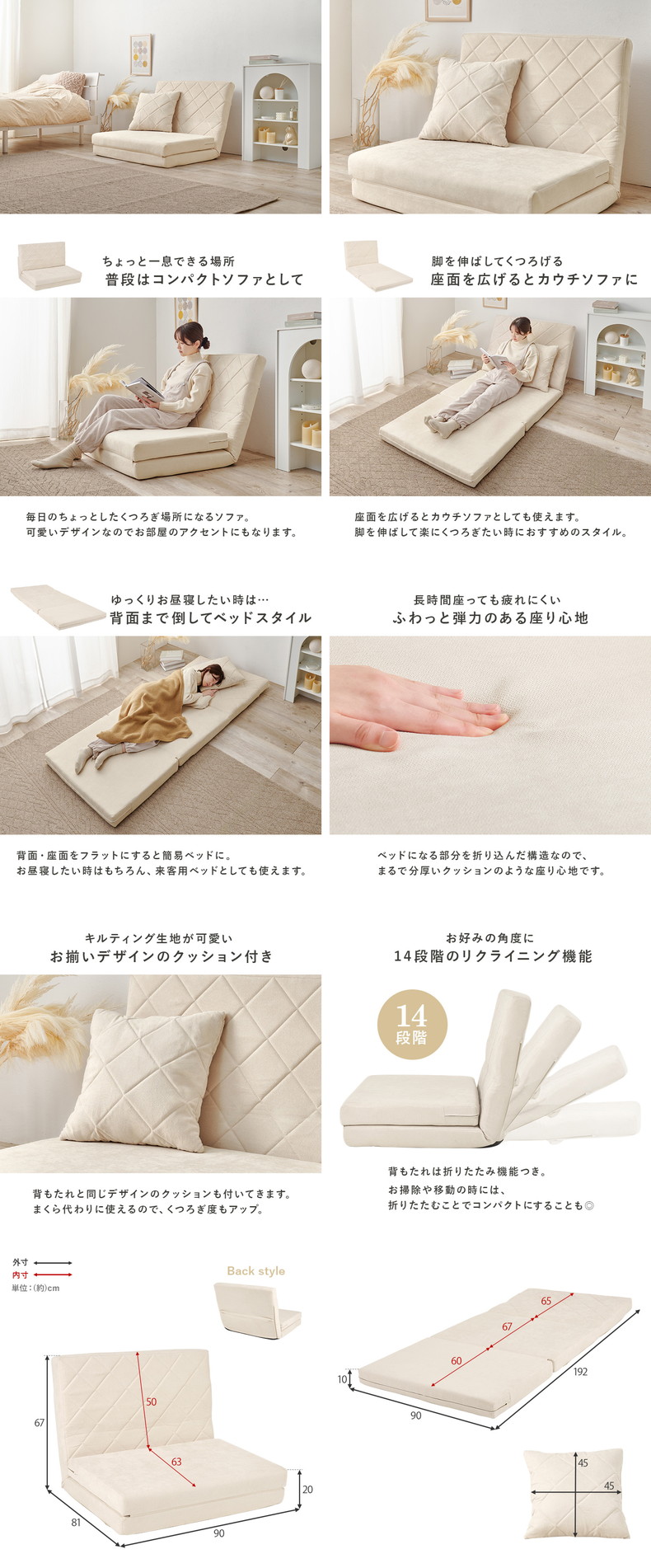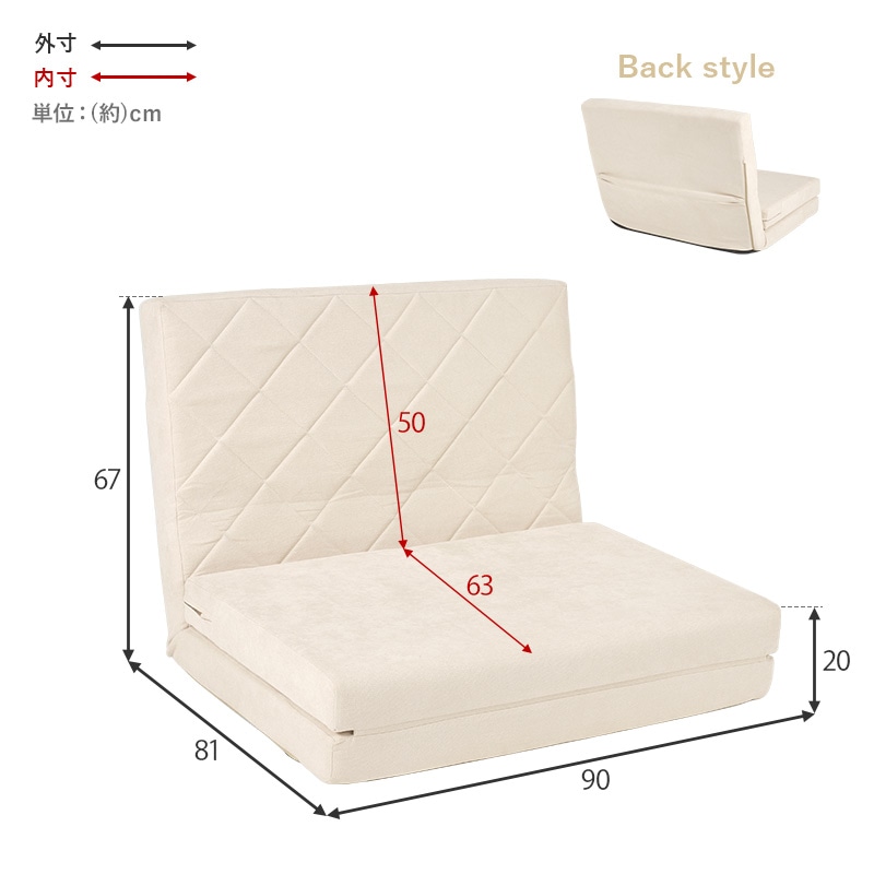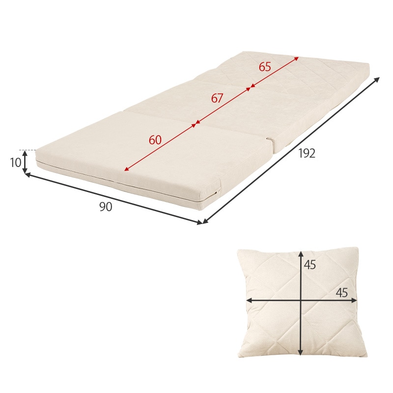 ソファベッド幅90cm/クッション1ヶ付(アイボリー)