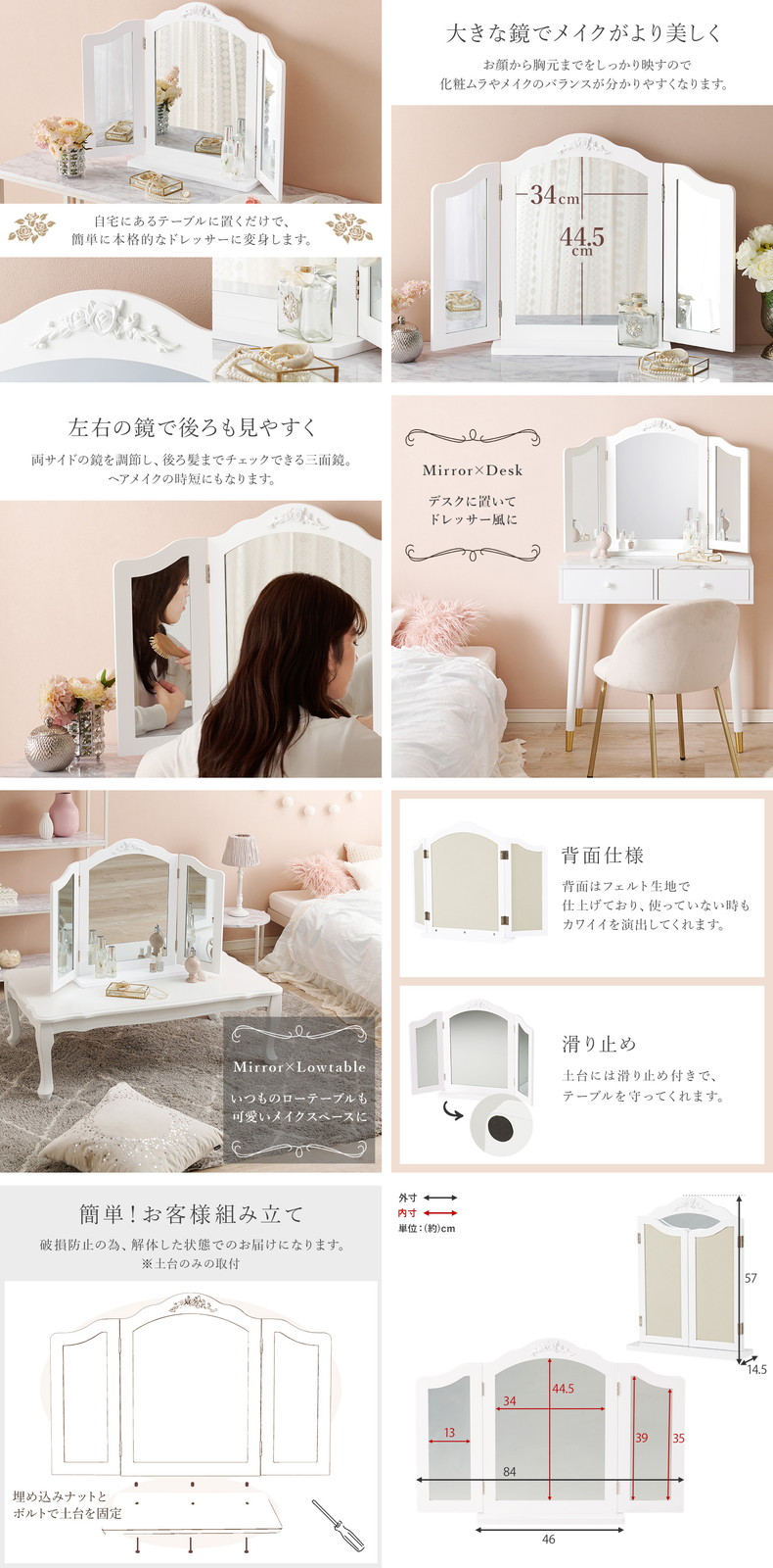(約)幅84(46)×奥行14.5×高さ57cm