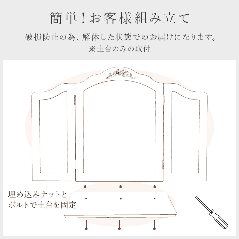 シャンデリア通販のシェリートライフルTOP > インテリア小物 > ミラー > ラフィネ レリーフミラー/三面鏡