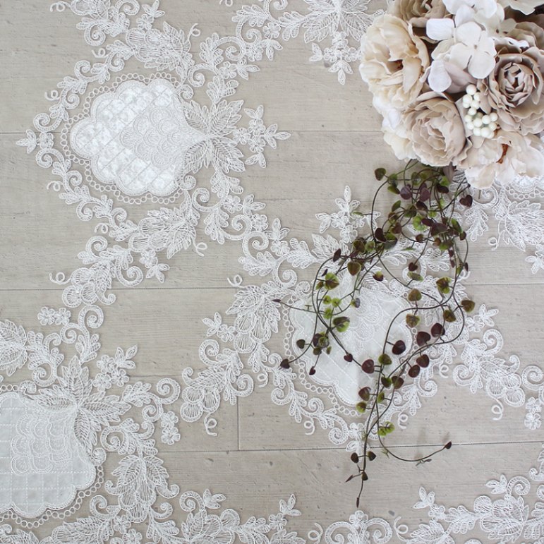 レースクロスホワイトフラワー(90x90cm)